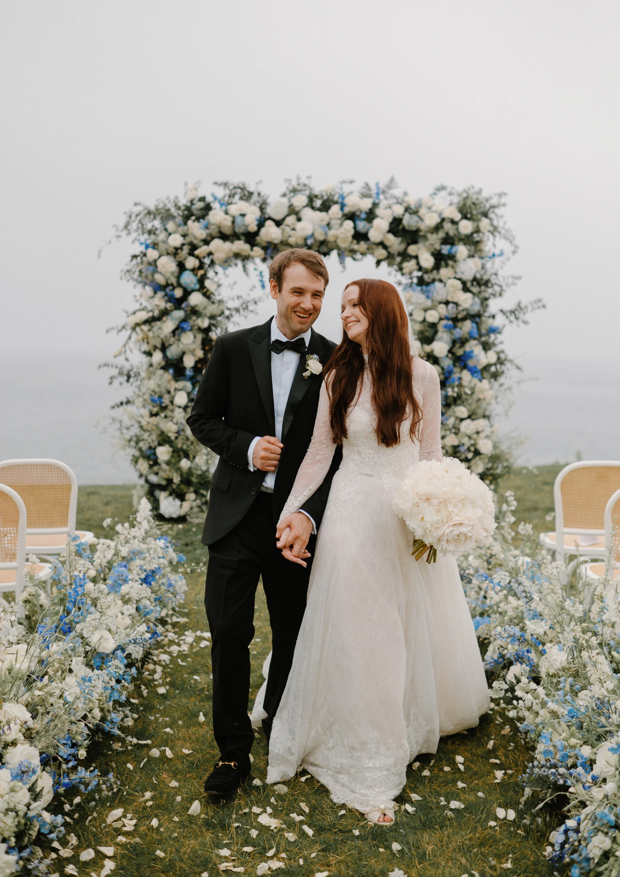 The sky is the limit when it comes to event florals at the Cliff House! While the gorgeous event spaces speak for themselves, they’re made even more beautiful with florals as the main focus. We’ve executed some gorgeous installations, incorporating elegant floral arrangements featuring sea-inspired elements like blue and white hydrangeas and white roses.